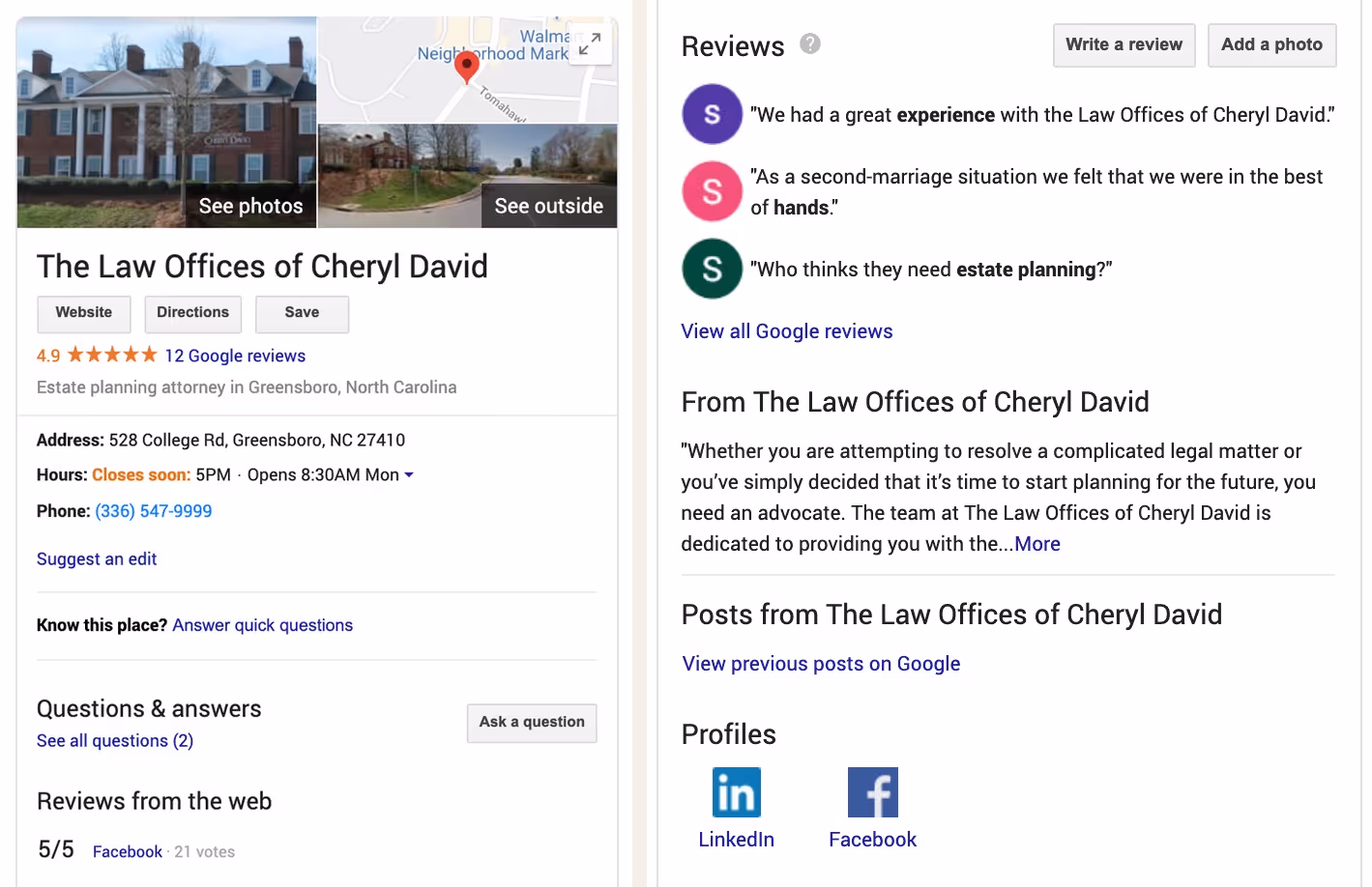 When potential clients search for your business, Google now offers most of the information consumers need right on the search results page. Many people no longer need to even click on your website.