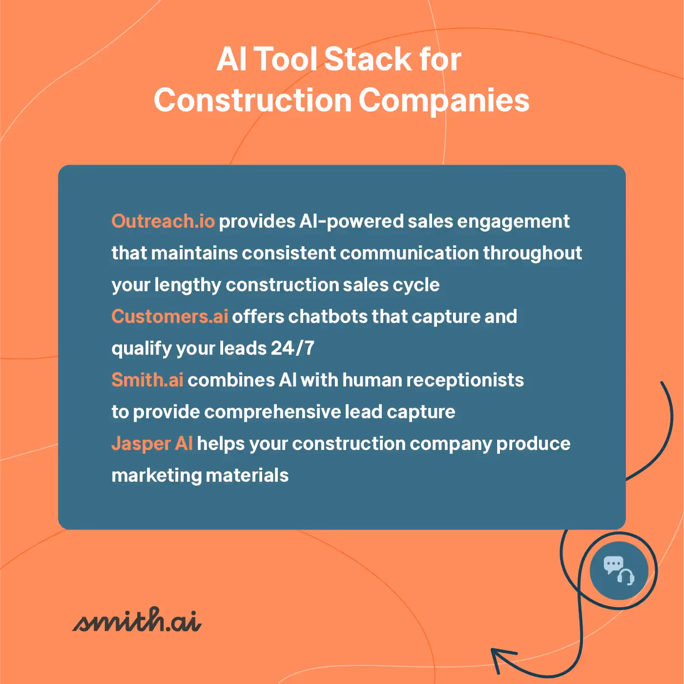 Your construction company can use AI-powered tools to generate leads, communicate with clients, and optimize marketing efforts in construction management.