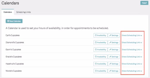 Calendar Specific direct links are only available for certain businesses whose accounts have more than one calendar set up. With Calendar Specific direct links, your receptionists will only be able to book appointments on that one calendar.