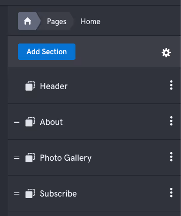 Navigate to your Home page (usually the default) and then click the “Add Section” button.