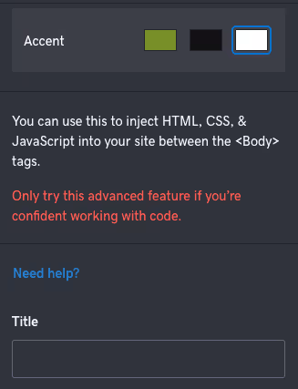 Create the section type “HTML”. Then, choose the accent color you prefer (white usually works best). You can skip the title unless it suits your website design or theme.