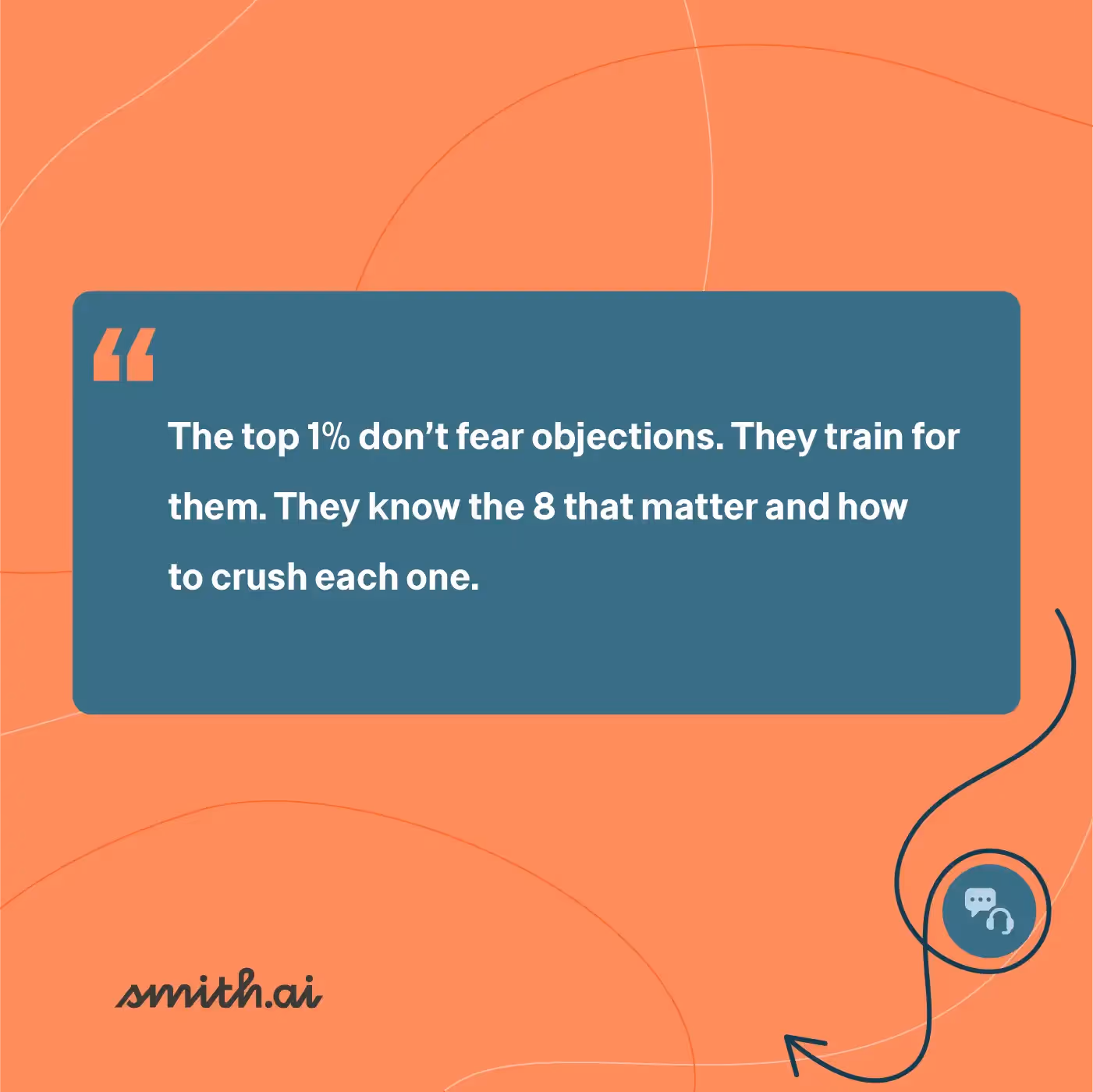Objections are not rejection signals. They're indicators of interest with specific concerns that need to be addressed. The top 1% of sales people know exactly what they’re going to say to potential sales objections. That’s what makes them great.