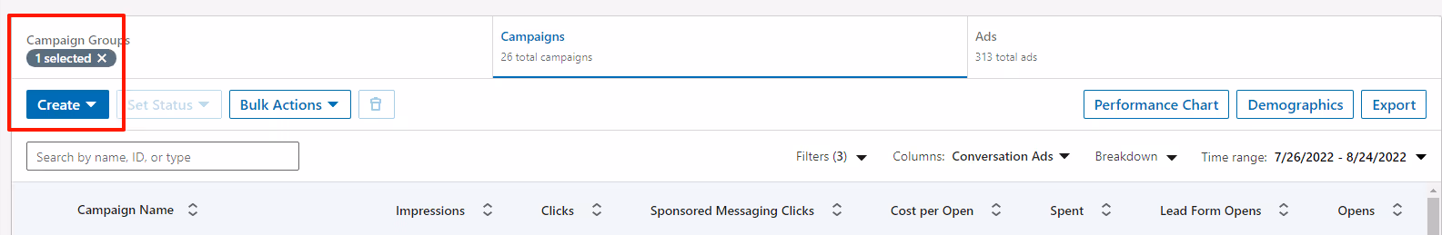 Once you’ve built your campaign, you can finally begin creating your conversation ads by following the steps below: