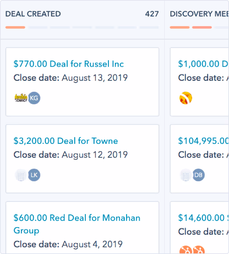 Sales Hub allows you to keep track of all of your deals, potential deals, meetings, and other details of marketing and making deals. You can even set dates, mark items to share, schedule emails to engage prospects, and so forth. Plus, you can see that prospects are viewing emails and use that information to help you make more appointments and convert more leads.