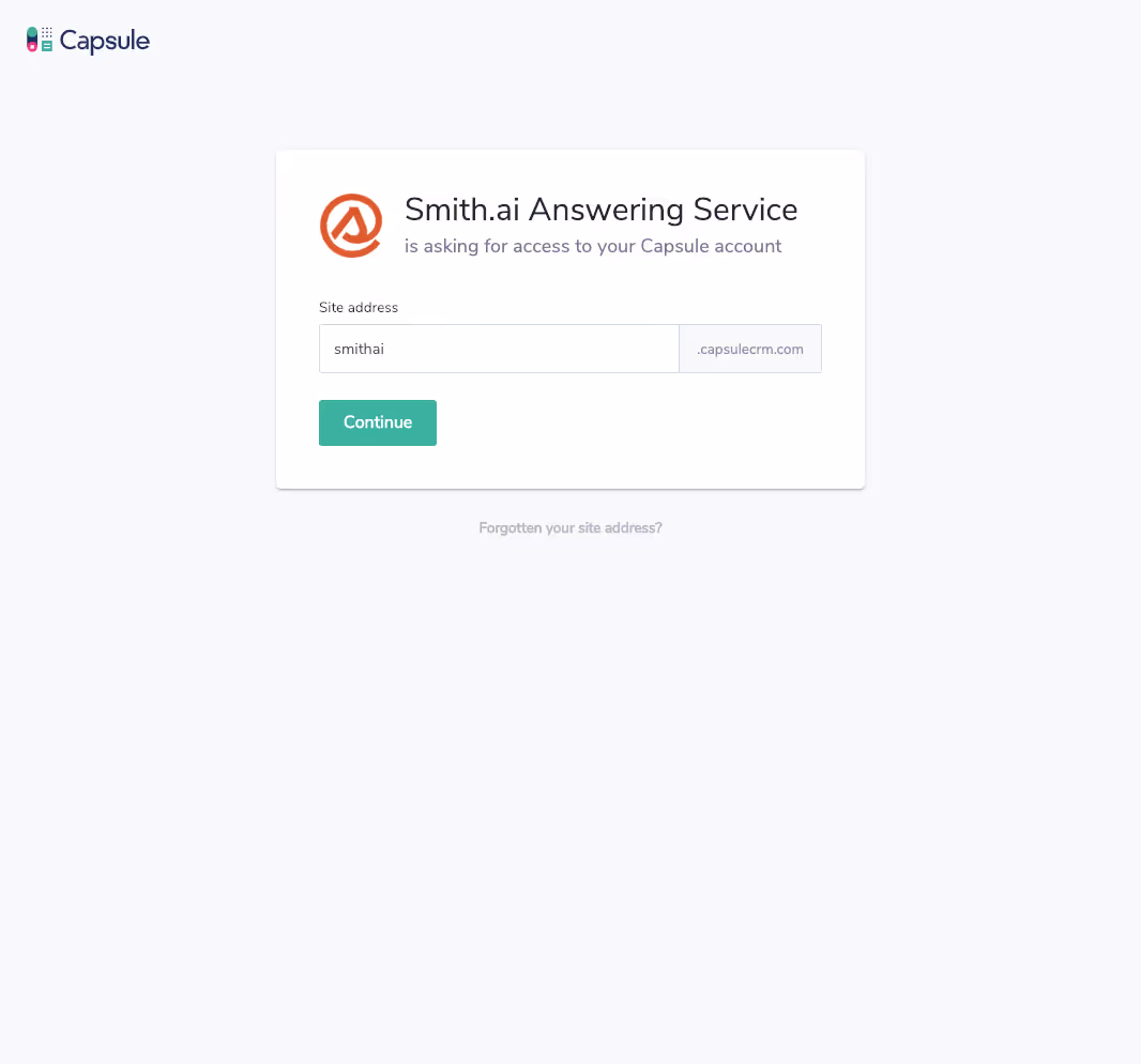 1. Email support@smith.ai with the subject line "Capsule CRM integration request." We will send you a link to authorize Smith.ai within your Capsule CRM account.