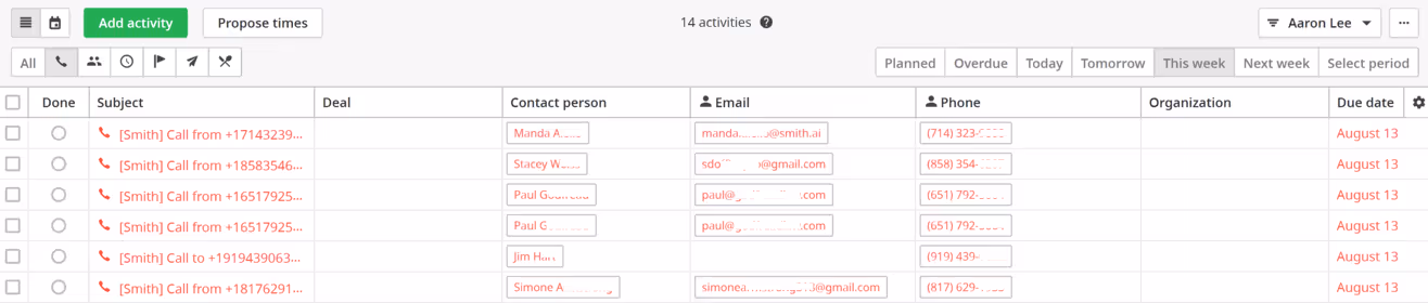 When your Pipedrive account is connected to Smith.ai, after each call is handled by one of our receptionists, the following will automatically occur: