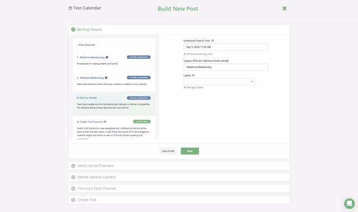 Loomly is a great tool not only to schedule and manage your social media accounts but also to gain valuable insights. It can suggest trends, hashtags, and even post-worthy events so that you’re always ready to weigh in on the social media conversation. You'll have a user-friendly dashboard that includes the idea generator, along with your calendar and a list of the accounts that you have. You can even use the Ideas view to plan the future of your social media.