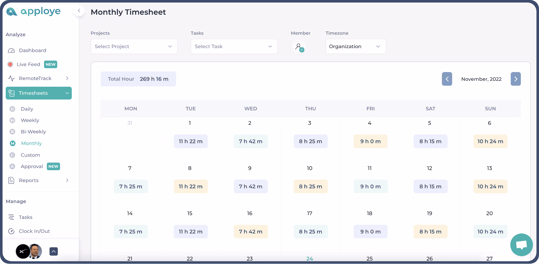 Apploye can track mobile team members' GPS locations from where they are working, project tracking, timesheet management on a daily, weekly, bi-weekly, monthly basis, invoicing, Pomodoro timer, and many more. Remote employees have the flexibility to create their tasks, select their organization, and do manual timesheet entries for any eventualities. Apploye has time tracking with a screenshot monitoring featureby which employers may wish to get 1 to 3 screenshots within 10 minutes. Apploye can even create employee rankings for your organization by analyzing productivity levels.