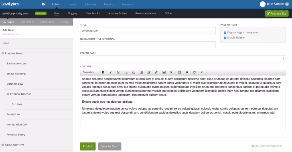 This is also a good time to go into your settings and make sure that your URLs are set to be customized and that your SEO sharing is enabled, as well as checking any other SEO settings along the way. This website builder is designed specifically for law firms so it may not offer as much customization for SEO as builders like WordPress, but it has a lot of features that you can use to get your law firm website going when you prefer a dedicated legal solution.